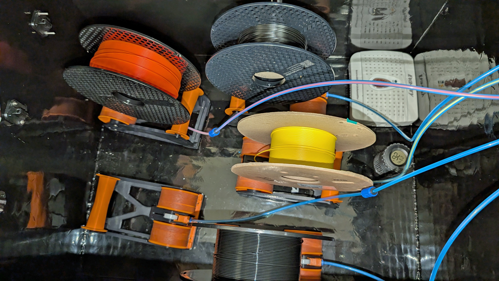 I have tried multiple styles of spool holders, buffers, re-winders and orientations. Most re-winders take up too much room or have problems if they are not designed for the exact retract length needed. All the "printed" clutch systems I tried were unreliable. A good feeder to the MMU3 must follows these rules.