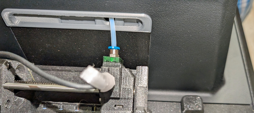 The entry into the enclosure from the back of the encloser. Holes high to align with the MMU3. The tubes go in straight to the MMU. No more binding/bending before entering the MMU3. Works great with the Horizontal mounted MMU3.
